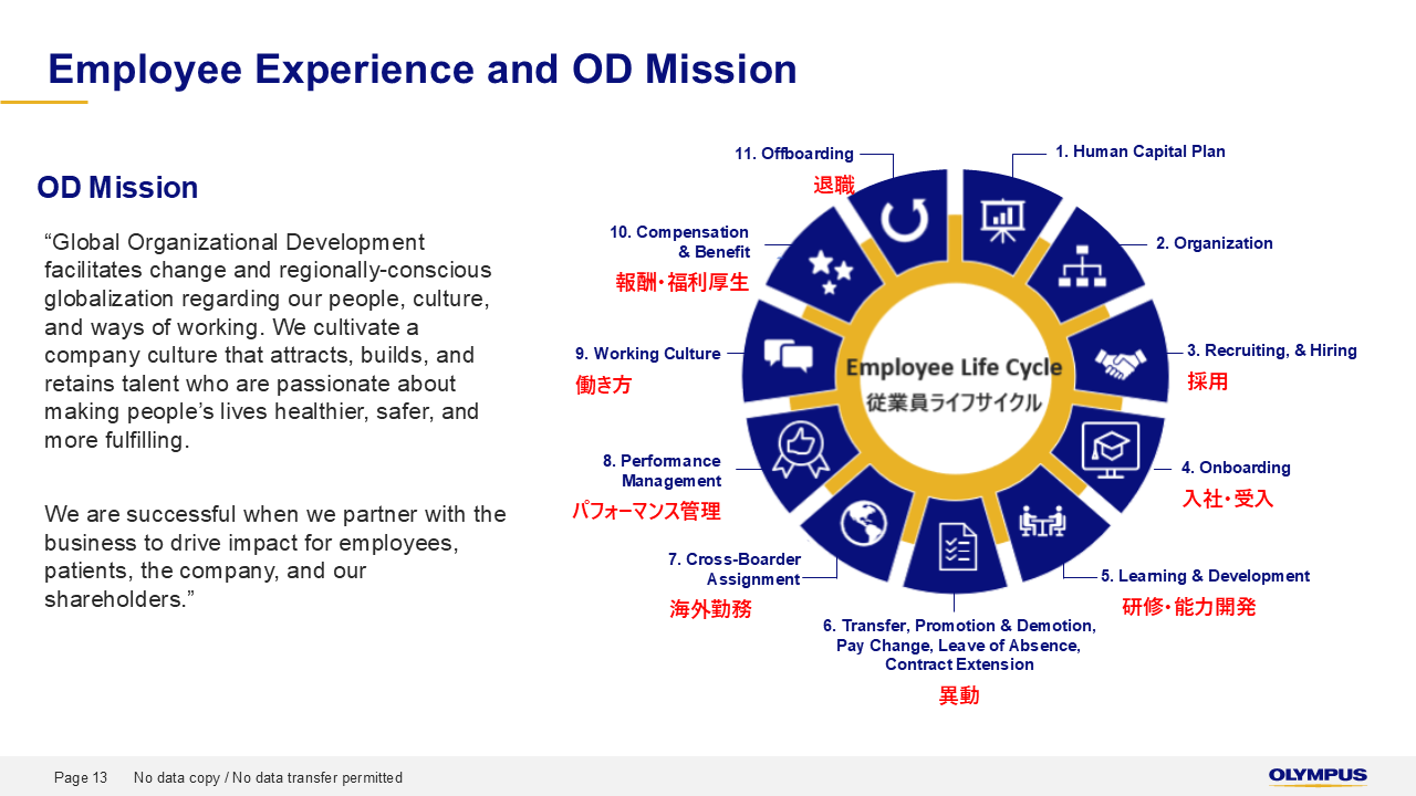これは私が個人的に思っていることですが・・事業のメインとなる内視鏡事業というのは早期発見、早期治療によって治癒率の向上に直結する、人の可能性を医療の中で最も信じている領域なんです。HRも人の可能性を信じてアプローチしていくことが大事、という点で同じだと思います。