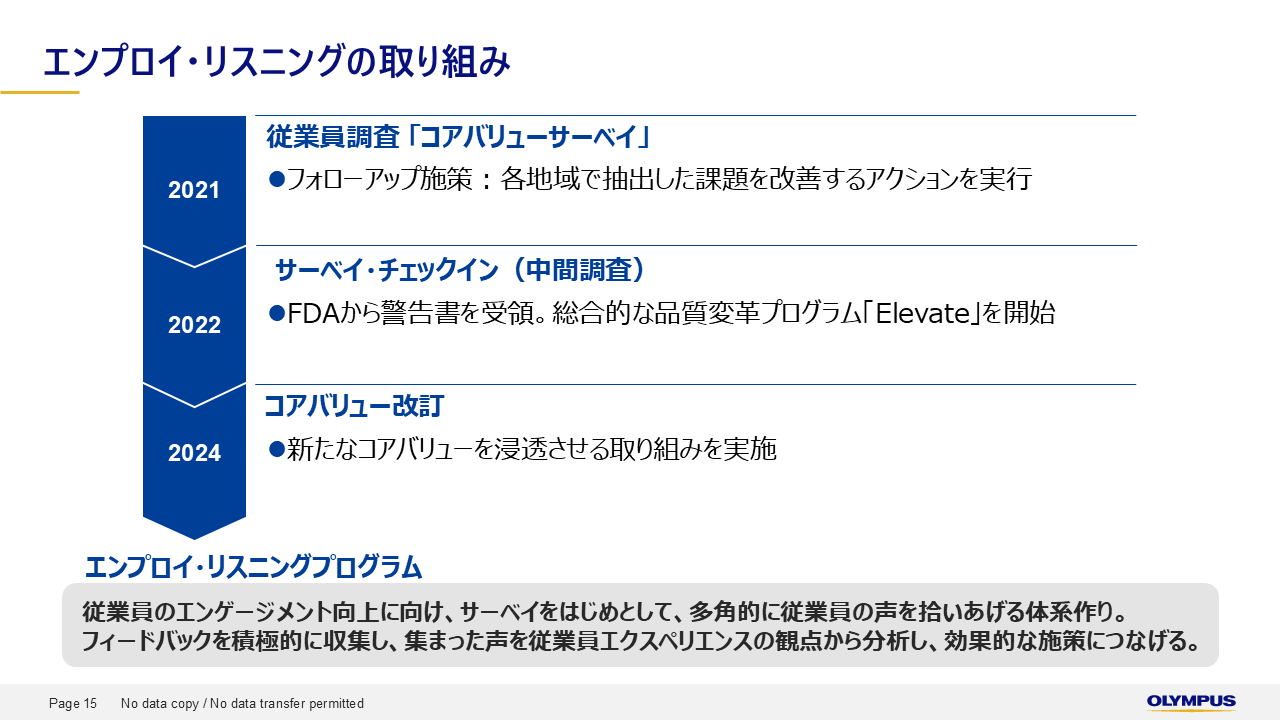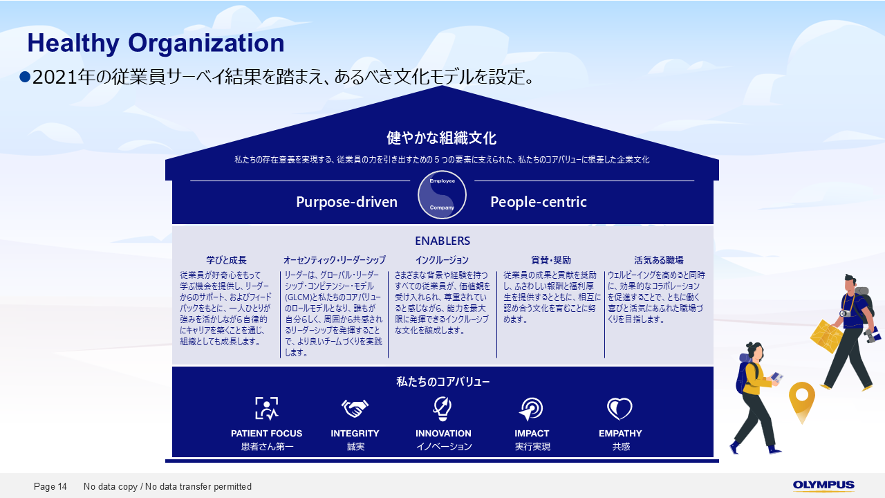 実施後に結果を分析し、グローバルメドテックカンパニーになるために必要となる「健やかな組織文化」というカルチャーモデルを明示して、全ての従業員に理解・共感してもらうように働きかけました。