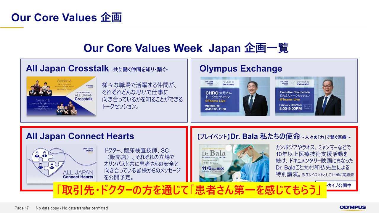 その考え方のもと、医療現場のお客様やパートナーの声を聴く「Core Values 企画」をされているわけですね。