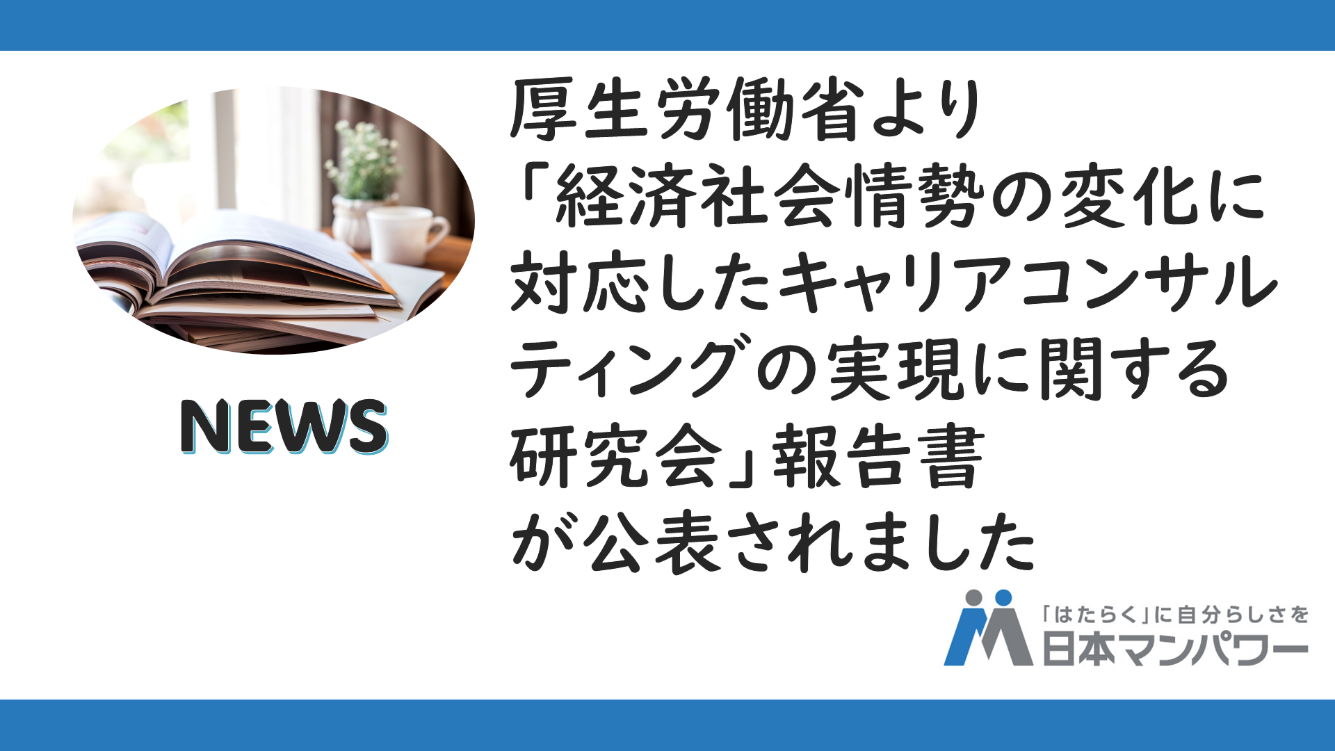 厚生労働省より「経済社会情勢の変化に対応したキャリアコンサルティングの実現に関する研究会」報告書が公表されました